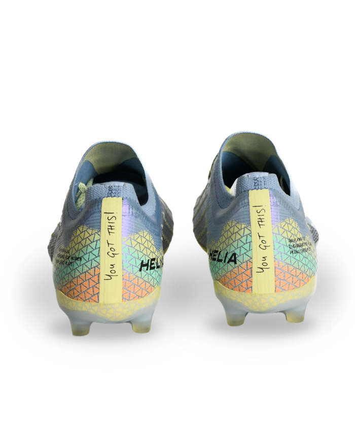 Das spezielle Stollenprofil sorgt für explosive Antritte, während die PEBAX-Sohle und der superkritische Schaumstoff im Innenschuh maximale Sprungkraft und Energierückgabe bieten, die Spielerinnen benötigen, um durchzubrechen. Optimierte FG/AG-Traktion: Kürzere, abgerundete Stollen bieten sicheren Halt für schnelle Drehungen und Richtungswechsel – ideal sowohl auf Naturrasen als auch auf 3G-Kunstrasen.